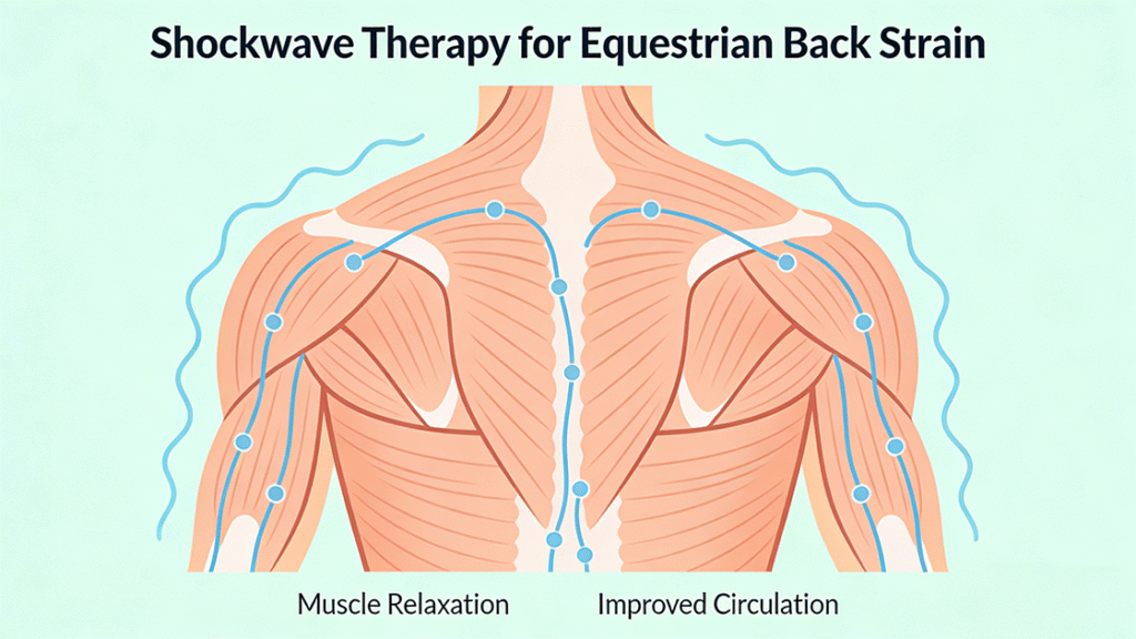 Shockwave therapy provides equestrian riders with a safe, non-invasive, and effective solution for chronic back strain. By stimulating deep tissue repair, reducing inflammation, and improving mobility, riders can recover faster, enhance posture, and enjoy longer, more comfortable riding sessions. When integrated with physiotherapy, core strengthening, and proper ergonomic evaluation, shockwave therapy offers a modern approach to maintaining long-term spinal health and optimal equestrian performance.