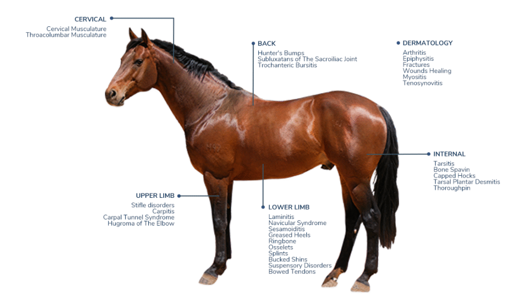 Shockwave therapy is widely used to support recovery across several musculoskeletal conditions frequently responsible for persistent lameness.